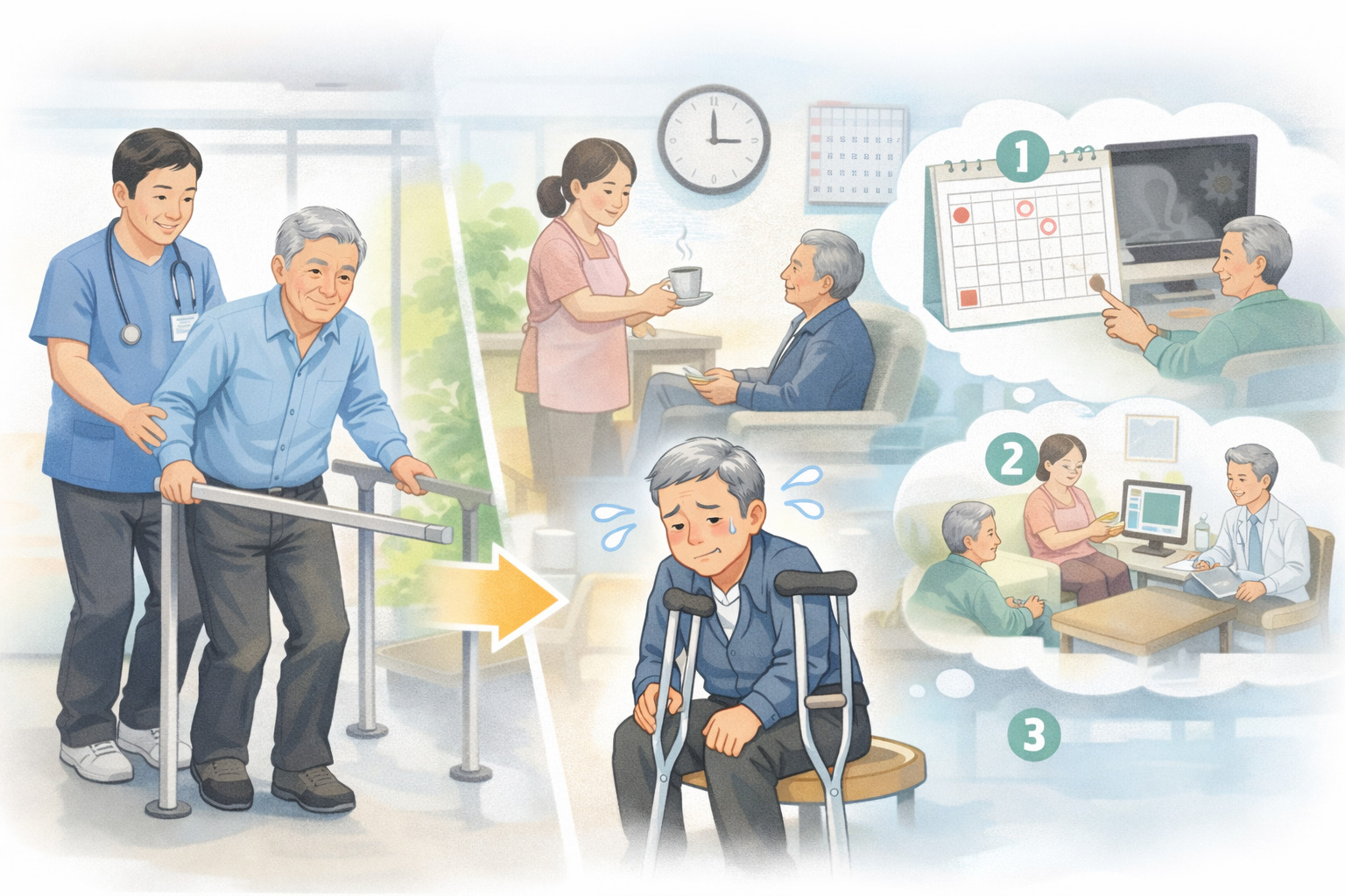 なぜ、回復期では良くなっていたはずなのに、退院後に「動きが落ちた」と感じてしまうのでしょうか。