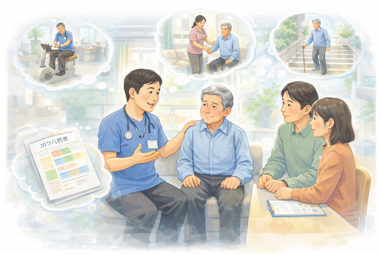 相談の場では、理学療法士や作業療法士などの専門職から、現在の状態や回復の見通しについて、具体的な助言を受けることができます。