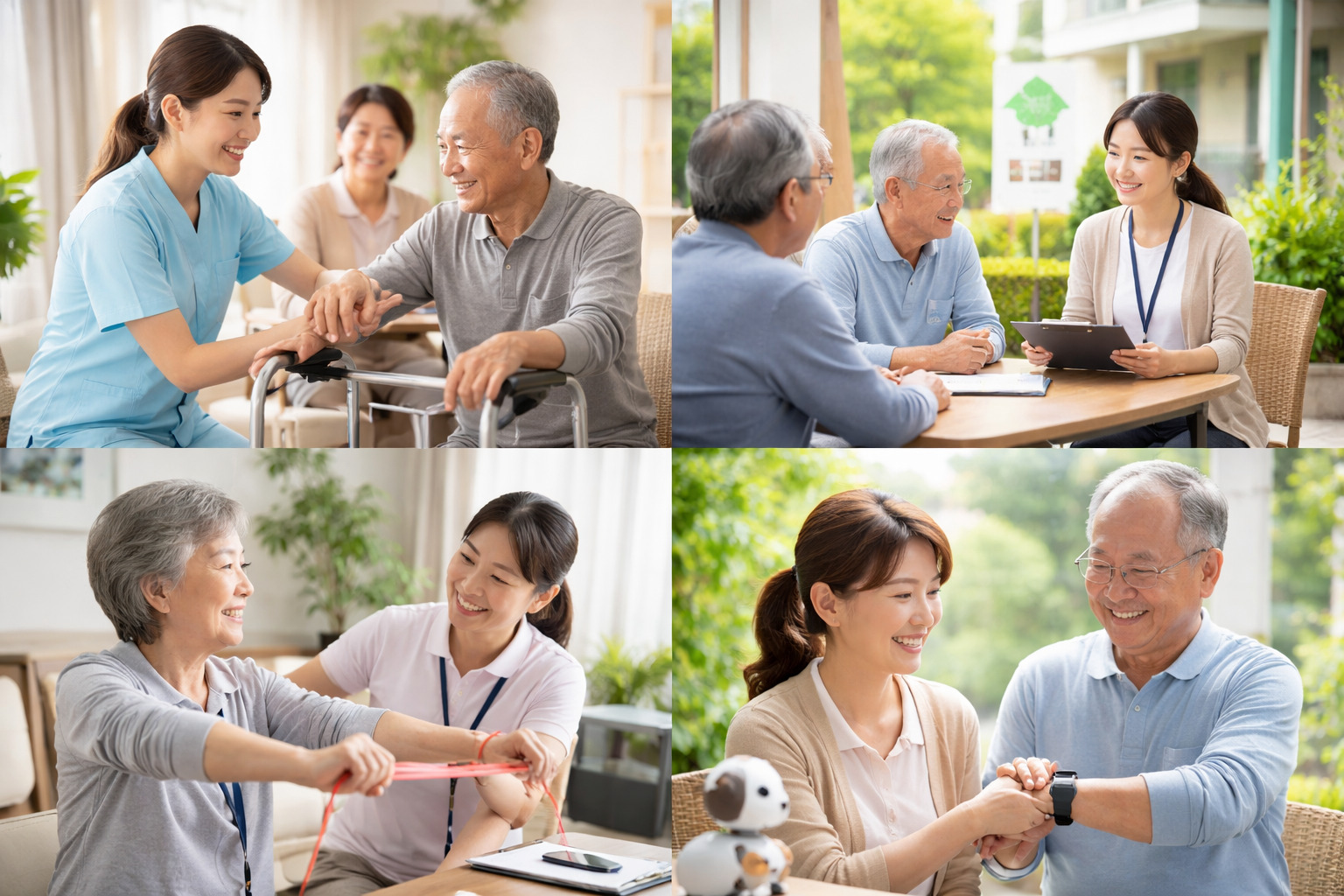 「どんなリハビリが自宅で受けられるの?」「介護保険で使えるサービスは?」「家族の負担を減らす方法はある?」——そういった疑問に応えながら、具体的なサービス内容、相談窓口、最新の支援制度、テクノロジーの活用例などをわかりやすくまとめました。