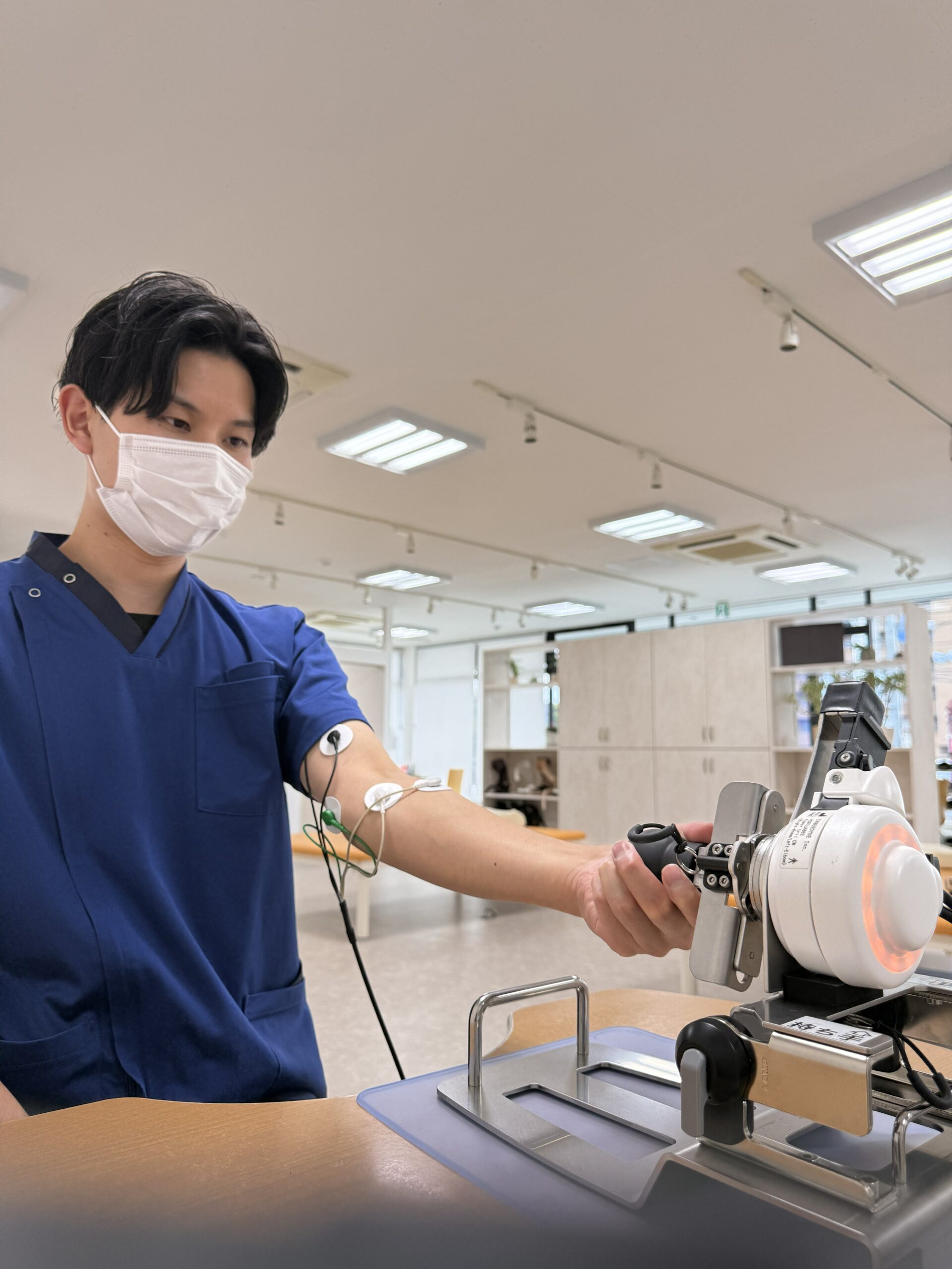 これにより、コップやタオル、ドアノブなどを扱う日常動作の回復につながります。
