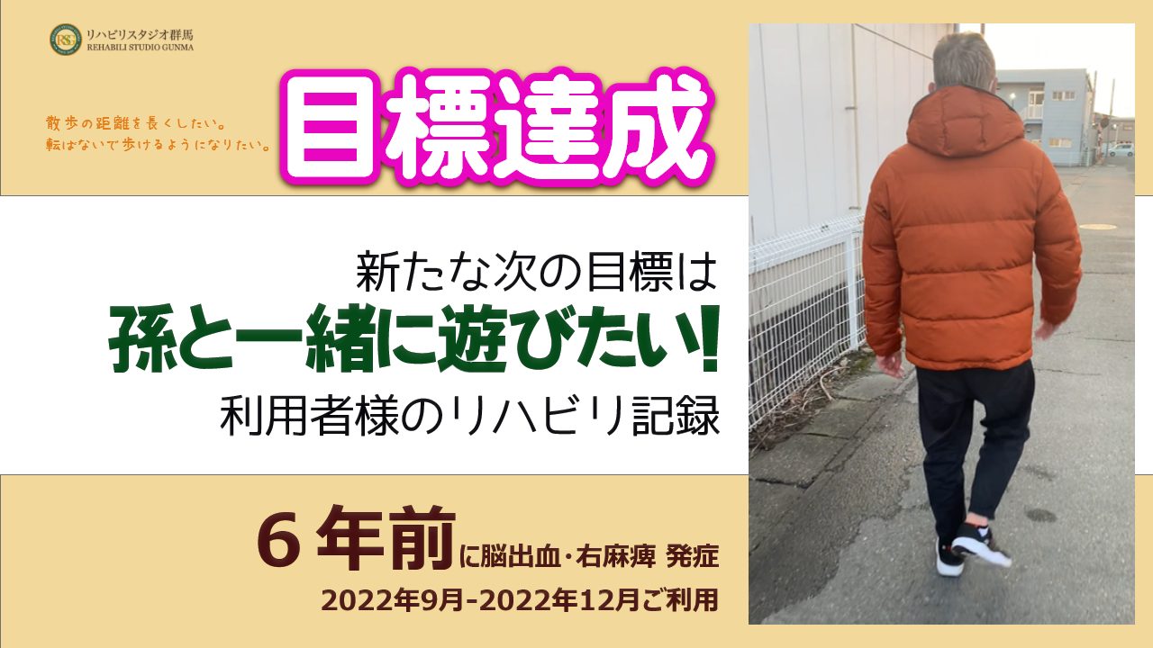 COLUMNコラム リハビリスタジオ群馬 HOME動画発症から6年、当施設で始めたリハビリで目標達成! 発症から6年、当施設で始めたリハビリで目標達成! 2023.02.27 × × × × 前へ 一覧に戻る 次へ